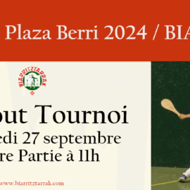Comme chaque année, l’association de pelote basque Biarritztarrak organise son tournoi d’été à Plaza Berri, 42 Avenue Maréchal Foch.Pour cette édition 2025, les parties se dérouleront tous les mardis à partir de 19h00... Pour en savoir plus